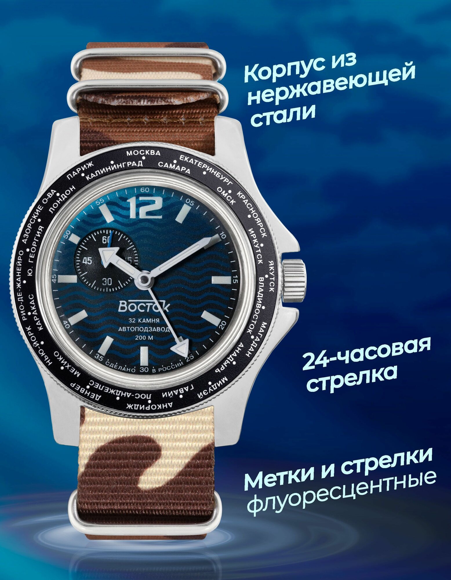 Наручные часы Восток Амфибия, нейлон камо пустыня: сравнение цен, характеристики, фото, актуальное наличие и цены.