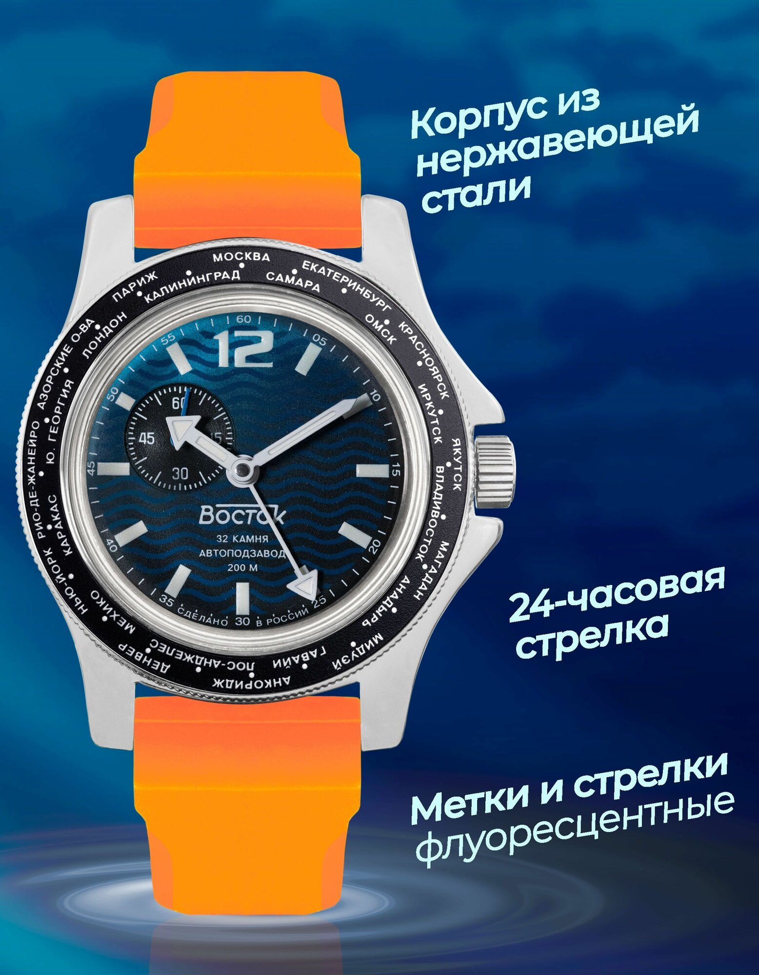 | Особенности | автоподзавод, водонепроницаемые, поворотный безель, подсветка стрелок, противоударные |