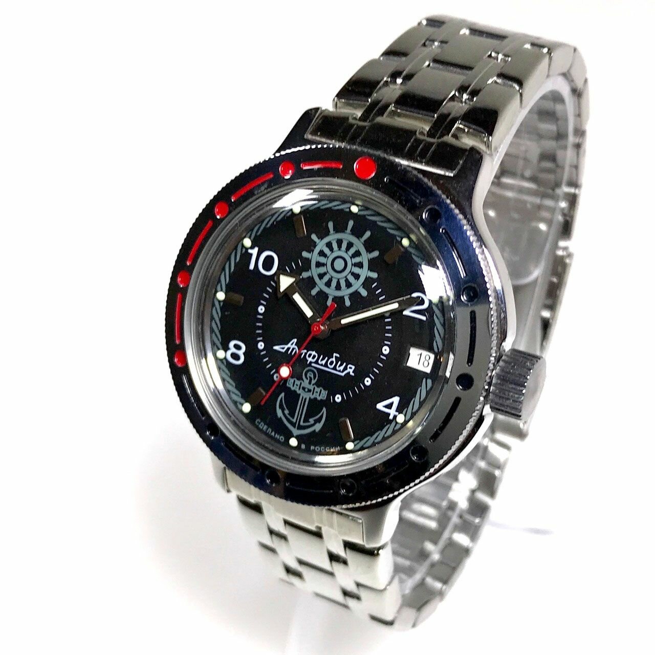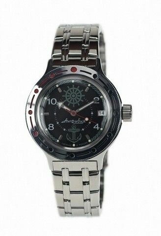 Наручные часы Восток Амфибия, черный, серебряный
