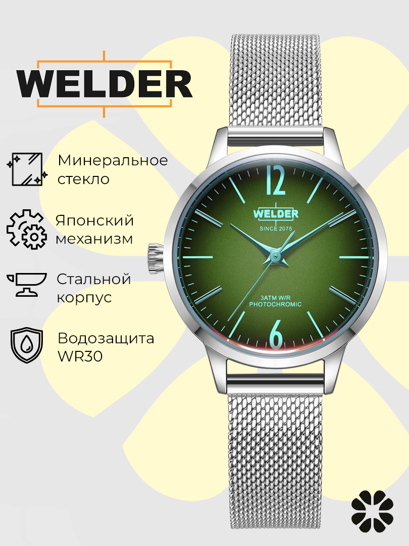 Наручные часы Welder, серебряный/зеленый: сравнение цен, характеристики, фото, актуальное наличие и цены.