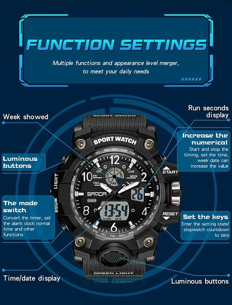 Наручные спортивные часы, асинхронное аналоговое и электронное время, с будильником, календарем и секундомером, SANDA: сравнение цен, характеристики, фото, актуальное наличие и цены.