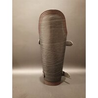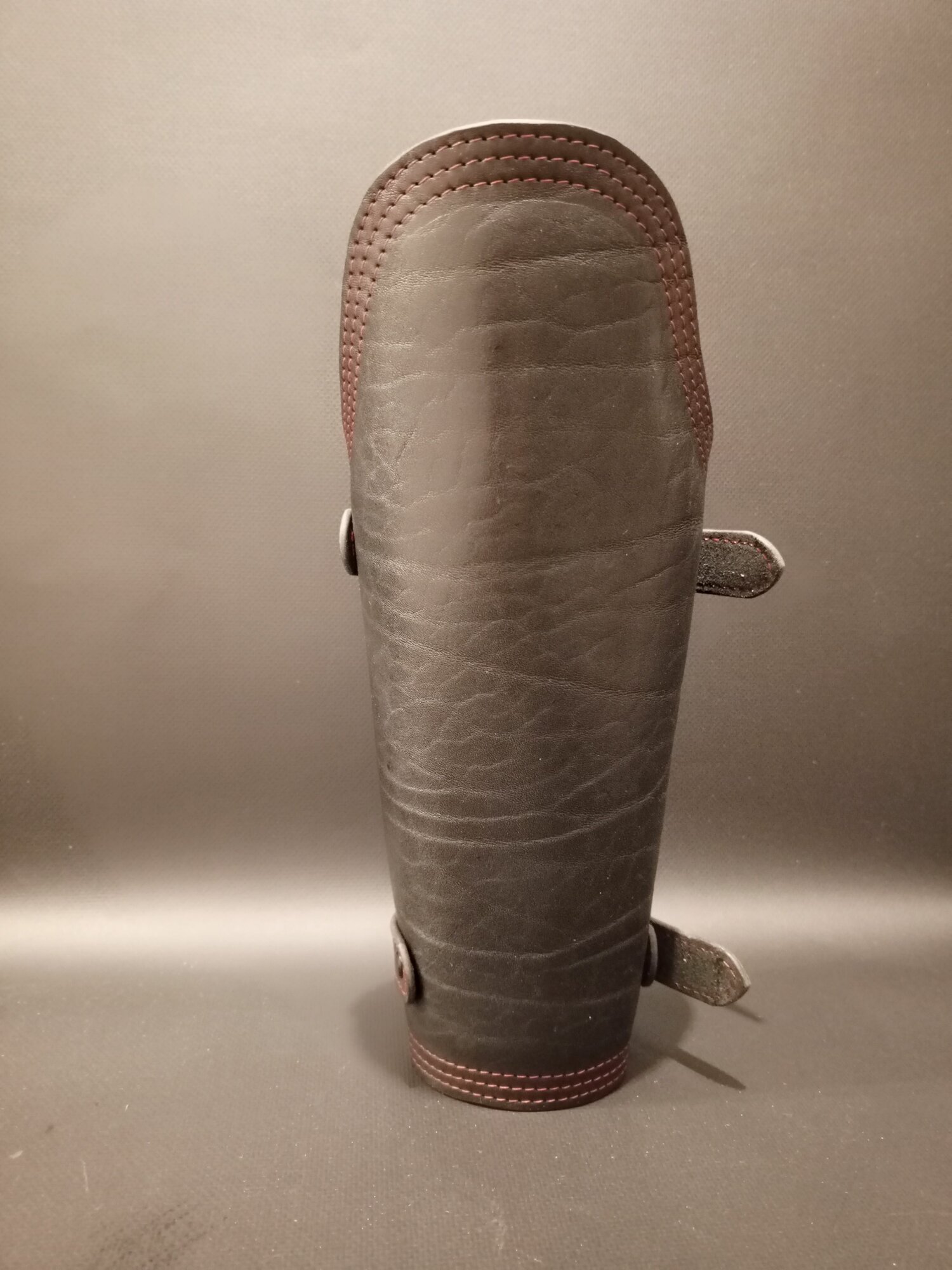 Кожа наружная КРС 2,0-2,3мм ( очень прочная, износостойкая, с красивой фактурой), кожа внутренняя 1,2-1,5мм ( прочная, мягкая), кожа на ремешках КРС 2,0-2,3мм, фурнитура , железо покрытое гальваническим путем, нитки ( очень прочные). Между двух кож, подклад 10мм. Руке будет мягко, будет "дышать". По мимо прошивки, кожа склеяна между собой. Урезы все обработаны как положено! Пряжка специально установлена с "барабаном". Упрощает одевание нарукавника, дольше прослужит ремешок. Вес нарукавника составляет +- 300 грамм, что делает его удобным для использования в течение длительного времени. Кожа снаружи обработана гелем для кожи (Франция)+ ручное нанесение с располировкой щеткой из натуральной щетины. Кожа изнутри пропитана маслом для кожаных изделий (Германия), урез обработан водостойким составом (Англия), клей Италия. Всю химию во всех своих изделиях использую только качественную