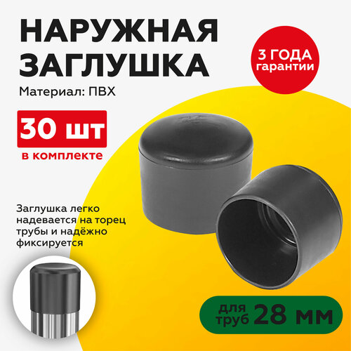 Заглушка пластиковая наружная декоративная для труб круглого сечения диаметром 28 мм. Заглушка легко надевается на торец трубы и надёжно фиксируется. Аккуратно закрывает необработанный срез трубы, а также защищает трубу от попадания внутрь влаги и пыли. Может использоваться в качестве опоры для мебели на металлическом каркасе.