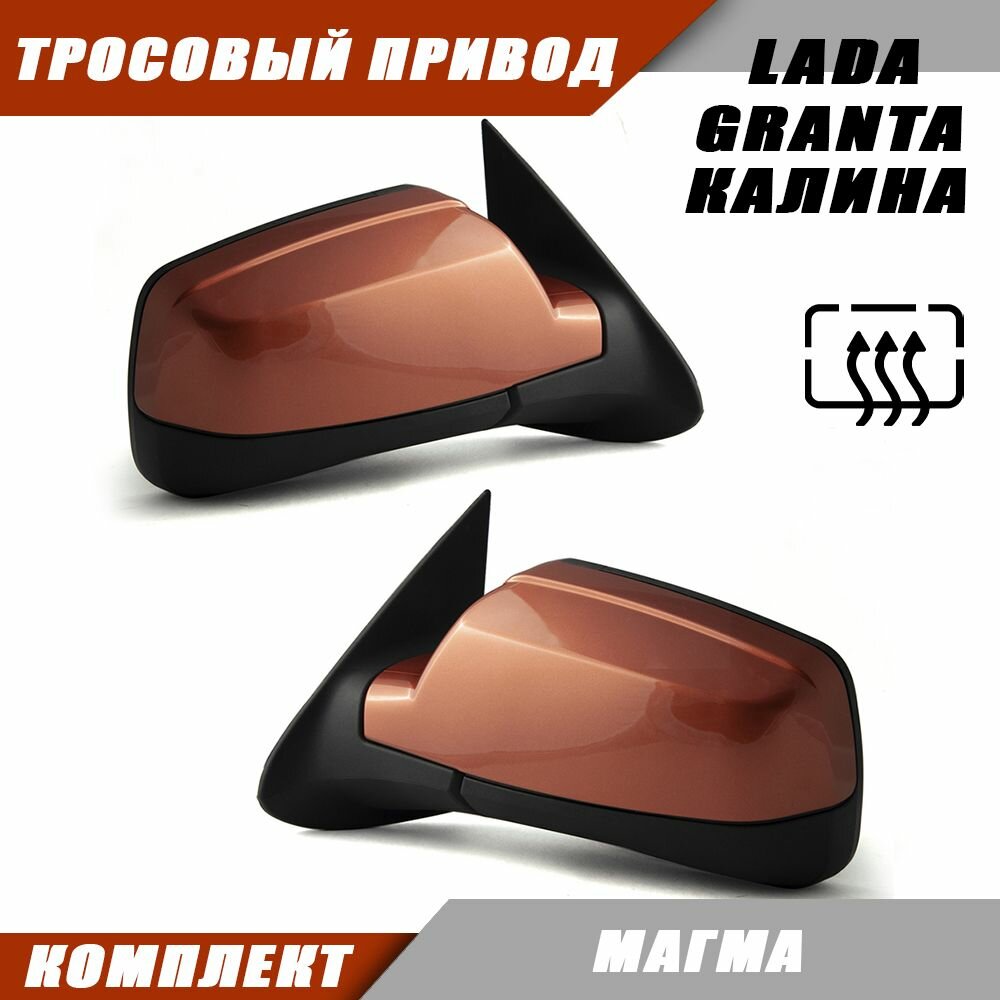 Комплект зеркал для Lada Kalina Granta 2190 с тросовым приводом, обогревом. Salina