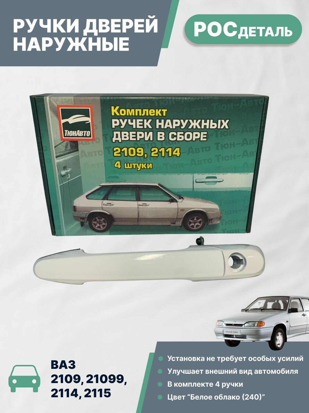 Евро ручки 4шт. Стальные тяги передние (длинные) 2шт. Стальные тяги задние (короткие) 2шт. Руководство 1шт. Упаковка 1 шт. Евроручки для ВАЗ 2109,21093,21099, 2114,2115 являются собственной разработкой компании ООО "ТюнАвто". Дверные ручки производятся из высококачественного материала стеклонаполненного полиамида, на собственном производстве базе в Самарской областит. Данные ручки отличаются от штатных прямым хватом (еврохват), улучшенной кинематикой. Евроручки нашего производства являются лучшим в своем роде благодаря качественному исполнению, современной внешности и долгому сроку службы.