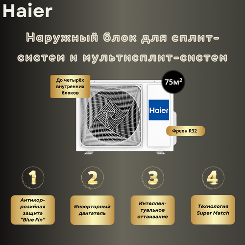 Наружный блок Haier 4U75S2SR5FA Super Match R32 для 4 внутренних блоков на 7,5 кВт: сравнение цен, характеристики, фото, актуальное наличие и цены.