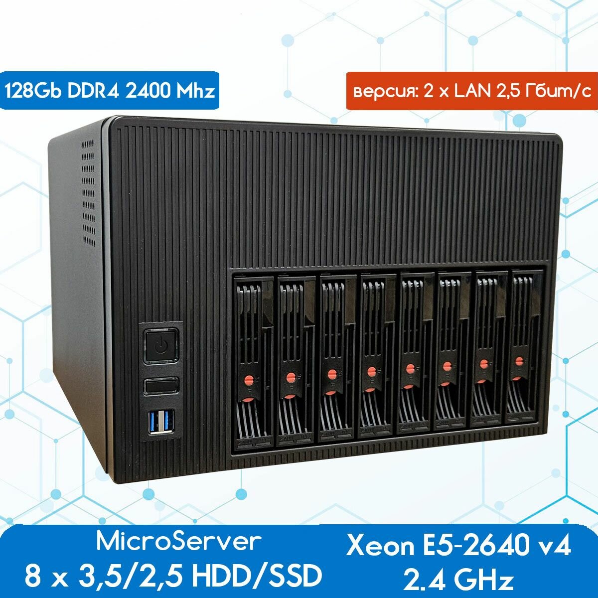 Купить NAS хранилище-микросервер Huananzhi 8 х 3,5″ HDD/Xeon E5 2640 v4 2.4 GHz/128Гб ОЗУ, 2xLAN 2,5 Гбит/с с доставкой по всей России.