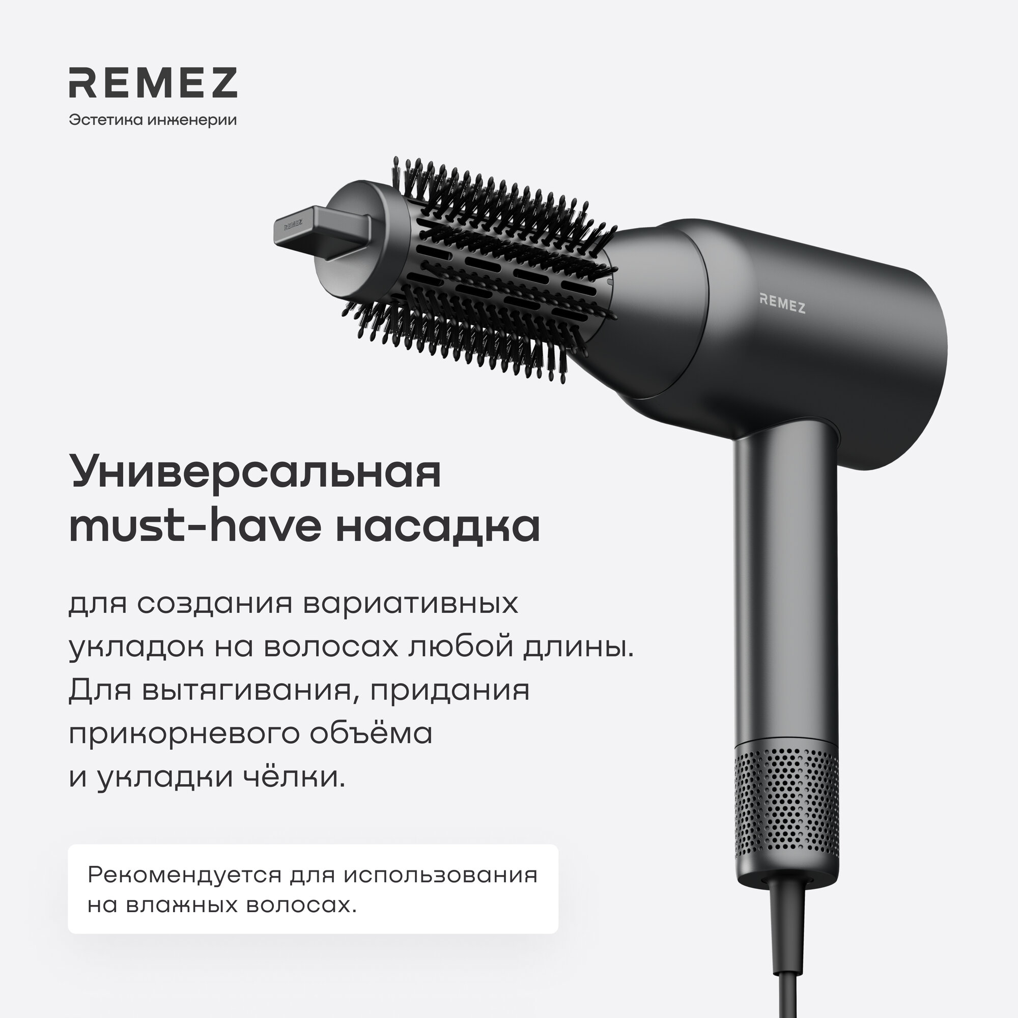Купить Насадка-браш Brush S для фена-стайлера REMEZ Model S, графит с доставкой по всей России. Насадка-браш Brush S для фена-стайлера REMEZ Model S, графит: сравнение цен, характеристики, фото, актуальное наличие и цены.