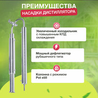 - Режим укрепления. Вода подается на холодильник и дефлегматор. Крепость напитка увеличивается до 77-80 об.