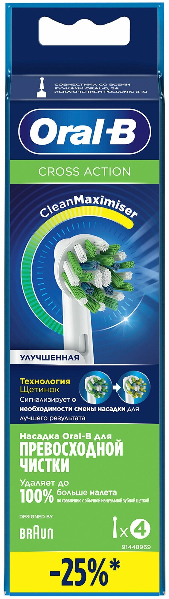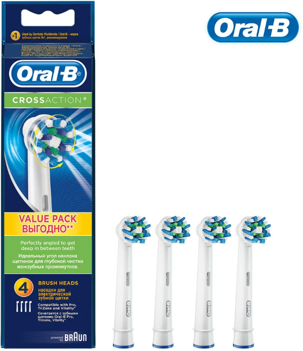 Насадки для электрической зубной щетки Oral-B Cross Action CleanMaximiser White, 4 шт.: сравнение цен, характеристики, фото, актуальное наличие и цены.