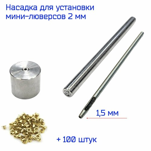 Комплект: пробойник и насадка состоящая из 2-х частей предназначенная для ручной установки люверсов диаметром 2 мм.
