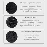 Данная насадка оказывает на мышцы эффект пассивных физических упражнений. Массаж с этой насадкой стимулирует мышцы, помогает убрать отёки из области суставов и улучшить их подвижность. Насадка выполнена из прочного АБС-пластика, сверху массажная часть покрыта прорезиненым материалом. Подходят ко всем моделям аппаратов вибрационного массажа G5, Aura, Au-A868, Body massager, New Turbo G8 2в1, ru-800s beauty instrument