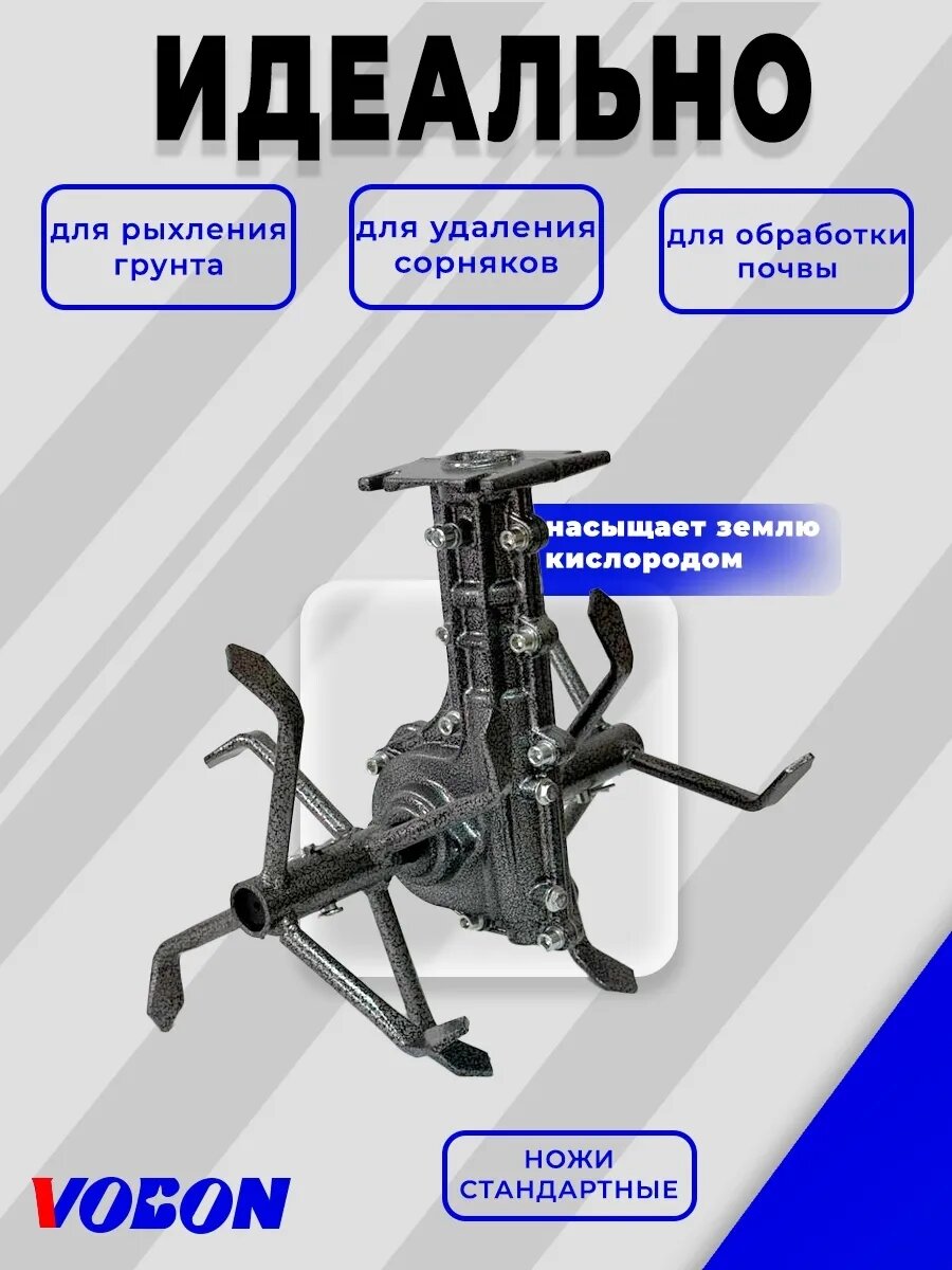 Насадка культиватор для триммера применяется для рыхления почв. Подходит для бензиновых триммеров 26 мм 7 шлицов. Насадка на бензокосу может использоваться как окучник, который поможет быстро обработать картофельное поле, а также как техника для прополки не занятых посевами территорий. Подходит для штанги диаметром 26 мм, вал имеет 7 зубьев. Ширина захвата обрабатываемой площади составляет 30 см. Насадка не просто культивирует почву, а насыщает ее кислородом.