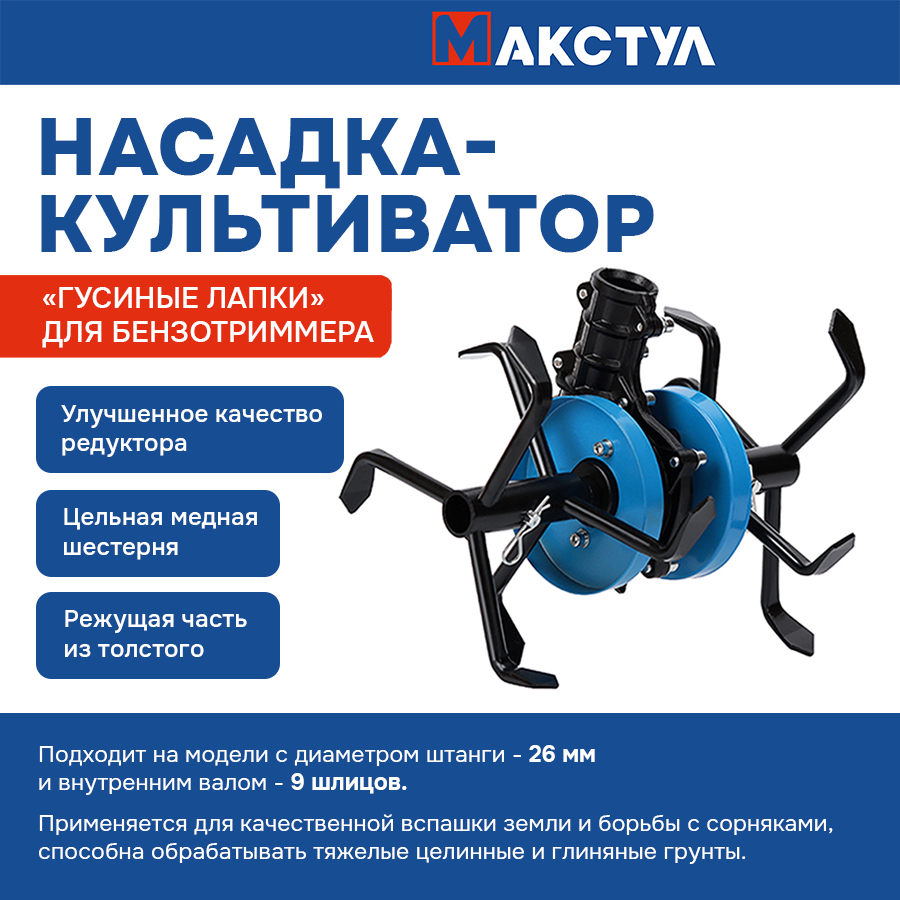 Насадка-культиватор "Гусиные лапки" от Maxtool - это надежный и качественный инструмент, который поможет вам быстро и без лишних усилий обработать почву на вашем участке.