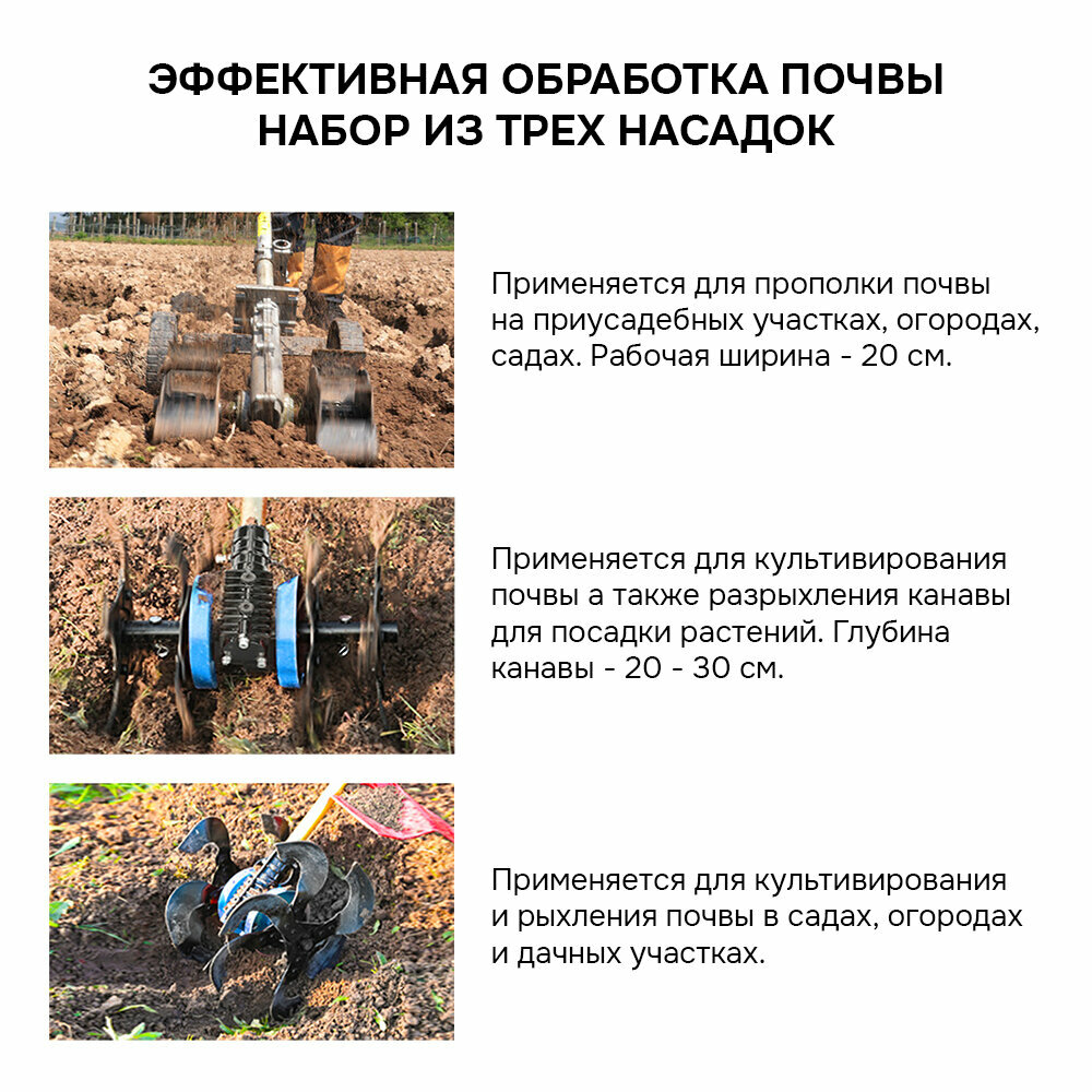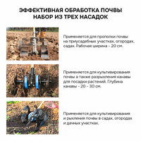 Насадка-культиватор оснащена 9 зубьями, что обеспечивает глубокое проникновение в почву и качественное рыхление. Это позволяет улучшить структуру почвы, улучшить воздухо- и влагообмен, а также способствует росту растений.