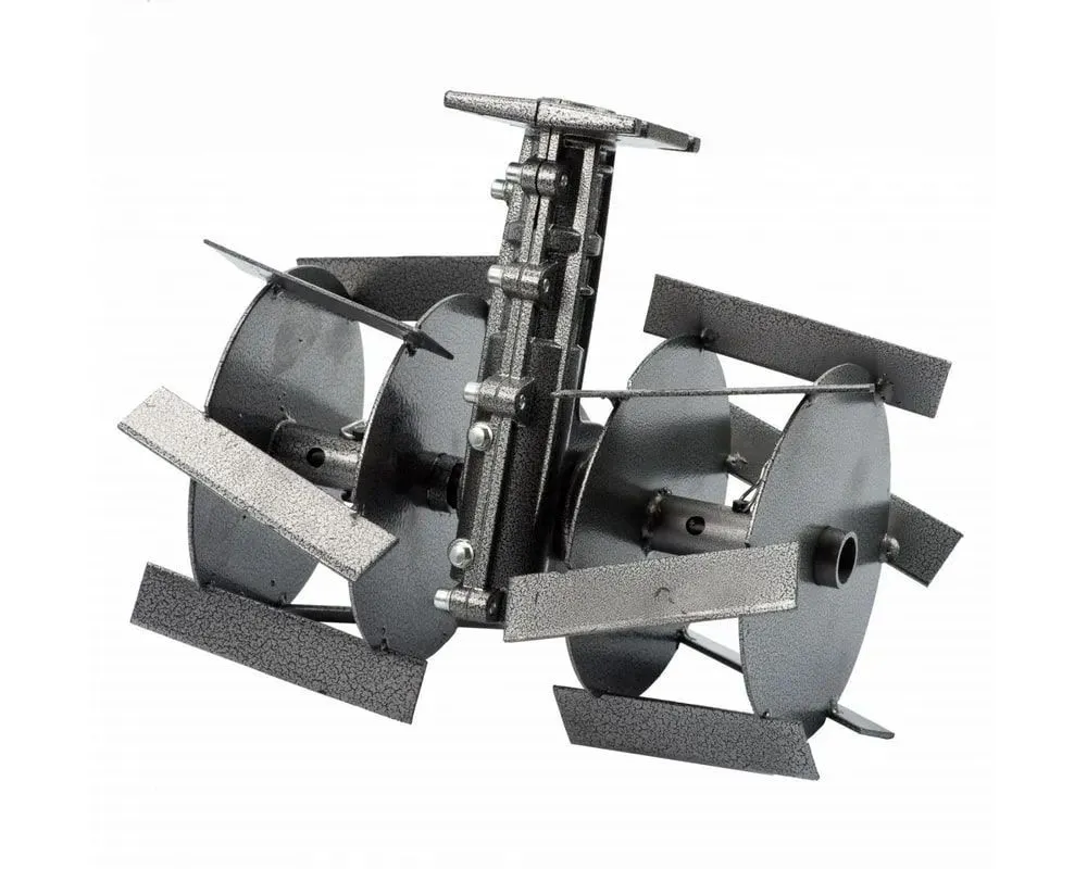 Предназначена для обработки грядок, клумб, цветников, почвы вокруг кустов и деревьев в саду. Подходит ко всем триммерам со штангой 26 мм. Насадка на садовый триммер для прополки надевается на штангу вместо нижнего редуктора. Переоборудование триммера в пропольщик проводится в течении 2 мин, не требует доп инструментов. Корпус устройства разборный. В корпусе имеются специальные устройства для добавления смазки. Материал корпуса алюминиевый сплав, фрезы изготавливаются из стали. Вал, на который устанавливаются фрезы стальной, кованый, шестерня бронзовая. Прополка как обработка культиватором ставят своей целью уничтожение сорняком методом изнурения растениям после обработки нужно время, для того чтобы восстановиться и набрать нужную силу. В это время картофель или другие овощные культуры смогут наоборот продолжить успешный рост, такая прополка картошки будет намного эффективней ручной. Повторная обработка потребуется не скоро.