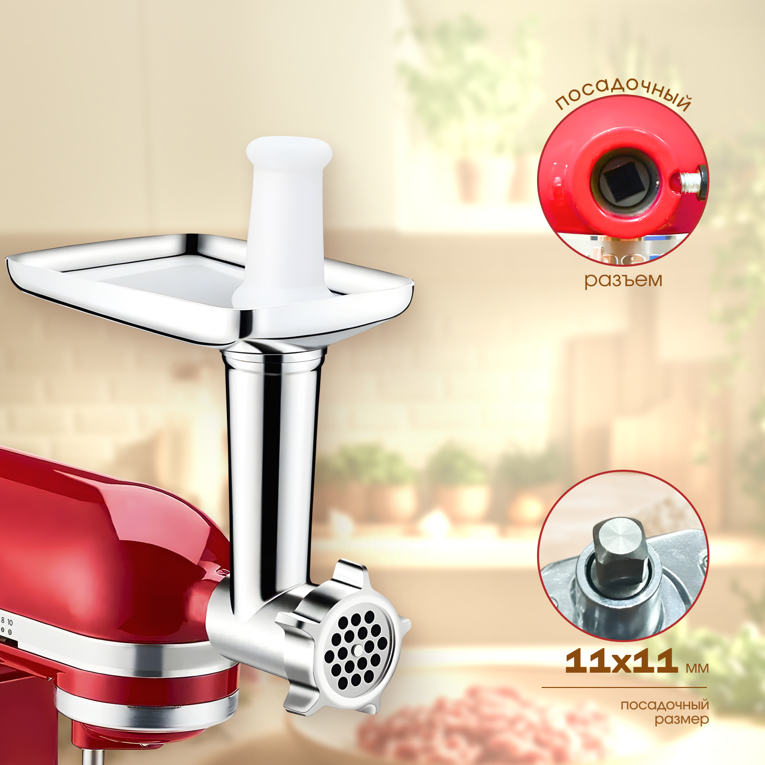 Насадка для мясорубки подходит для всех вертикальных миксеров KitchenAid. Новый дизайн и здоровье: вся конструкция изготовлена из нержавеющей стали, которая обладает более высокой твердостью и термостойкостью, а также более долговечна. Поднос для пищевых продуктов из нержавеющей стали был модернизирован, чтобы стать больше, больше по размеру, прочнее и долговечнее.
