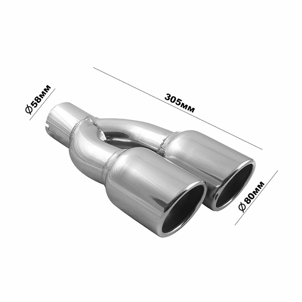 Насадка на глушитель универсальная двойная Dвх 58, Dвых 2х80mm (длин 305мм) из нержавеющей стали: сравнение цен, характеристики, фото, актуальное наличие и цены.