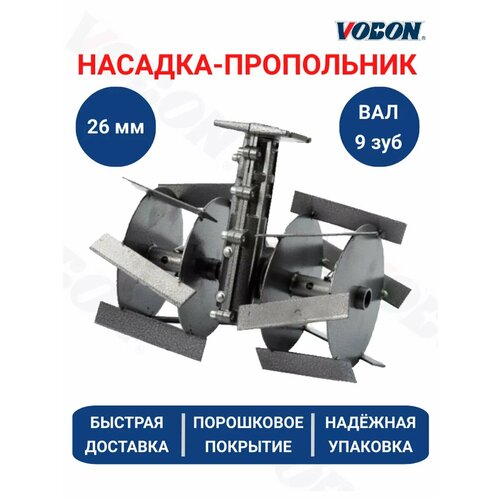 Насадка-пропольник VOBON 26мм (9 шлиц)-Насадка пропольник для триммера с порошковым окрасом предназначена для работы на садовом участке и может применяться совместно с бензиновыми триммерами для обработки грядок, клумб, цветников, почвы вокруг кустов и деревьев в саду. Подходит для работы на всех типах почв. Особенность этой насадки и формы шлицов в том, что она захватывает стебель сорняка и вместе с корнем поднимает его на поверхность земли. Вместе с этим осуществляется аэрация почвы, что позволяет воздуху в процессе прополки проникать к корням культурных растений и улучать качество вашего будущего урожая. Прочный и долговечный материал, из которого изготовлена насадка пропольник для триммеров, обеспечивает надежность и долгий срок службы садового инструмента. Рекомендуется изпользовать бензотриммера мощность 2.5 л. с и больше.