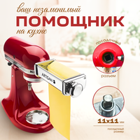 С помощью металлической насадки-раскатки для теста вы в любой момент сможете приготовить идеально тонкое, гладкое мучное изделие. Тончайшие листы используются для создания макарон, лазаньи и других блюд, например, корзиночек для закусок. Хромированная сталь – долговечна и надежна. Устройство идеально дополнит вашу кухонную машину КитченЭйд и станет лучшим помощником, который возьмет на себя обязанности по приготовлению идеального теста для пасты. С насадко-раскаткой вы экономите 99% времени, ведь вручную получить столь ровные и тонкие листы сложно – это под силу только профессионалу. Но KitchenAid с легкостью берет на себя эти функции и готовит для вас безупречные мучные изделия! Использовать насадку можно с любой моделью планетарного миксера от американского производителя. Ее преимущество – целостность конструкции и отсутствие пластиковых деталей. Ширина пласта получается 14,5 см, а толщина – от 8 до 1 мм.