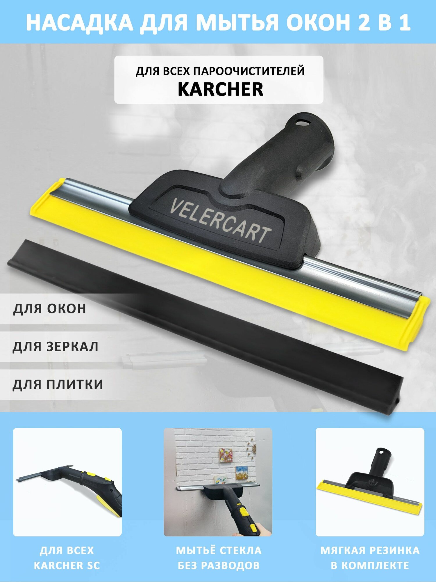 Купить Насадка VELERCART Comfort для мытья окон и зеркал для пароочистителей Karcher SC 1 — 5 и SI, 2 резинки в комплекте с доставкой по всей России. Насадка VELERCART Comfort для мытья окон и зеркал для пароочистителей Karcher SC 1 — 5 и SI, 2 резинки в комплекте: сравнение цен, характеристики, фото, актуальное наличие и цены.