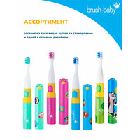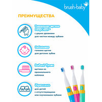 Сменные насадки к детской электрической звуковой зубной щетке Brush-Baby Go-Kidz с 3 лет. Расположение щетинок способствует удобной чистке детских молочных и первых коренных зубов.