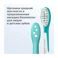 Мягкие щетинки компактной насадки для зубной щетки совместимой с Philips Sonicare For Kids повторяют форму зубов детей в возрасте от 7 лет и деликатно очищают зубы. Прорезиненное обрамление задней части насадки защищает детские зубы от травмирования и обеспечивает комфорт во время чистки. Превосходная очистка и максимальная эффективность Звуковая щетка обеспечивает максимум эффективности за короткий промежуток времени*, в течение которого ребенок чистит зубы. Она помогает прививать здоровые привычки и улучшать технику чистки зубов. Продвинутая звуковая технология Sonicare создает поток микропузырьков, который удаляет налет даже между зубами, что позволяет щетке эффективно удалять налет в полости рта. Подходит к любой щетке Philips Sonicare со съемными насадками Насадки для зубной щетки Sonicare For Kids можно снимать и снова устанавливать на щетку, надежную фиксируя их, что значительно упрощает процесс очистки и обслуживания. Эффективный уход для здоровья полости рта Эта насадка, как и все оригинальные чистящие насадки Philips Sonicare, безопасна для десен и зубов.