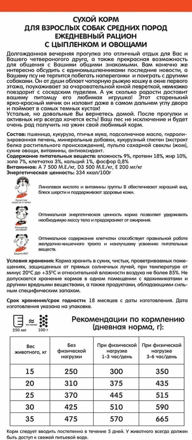 | Возраст животного | взрослые (1-6 лет), пожилые (7+), щенки (до 1 года) |