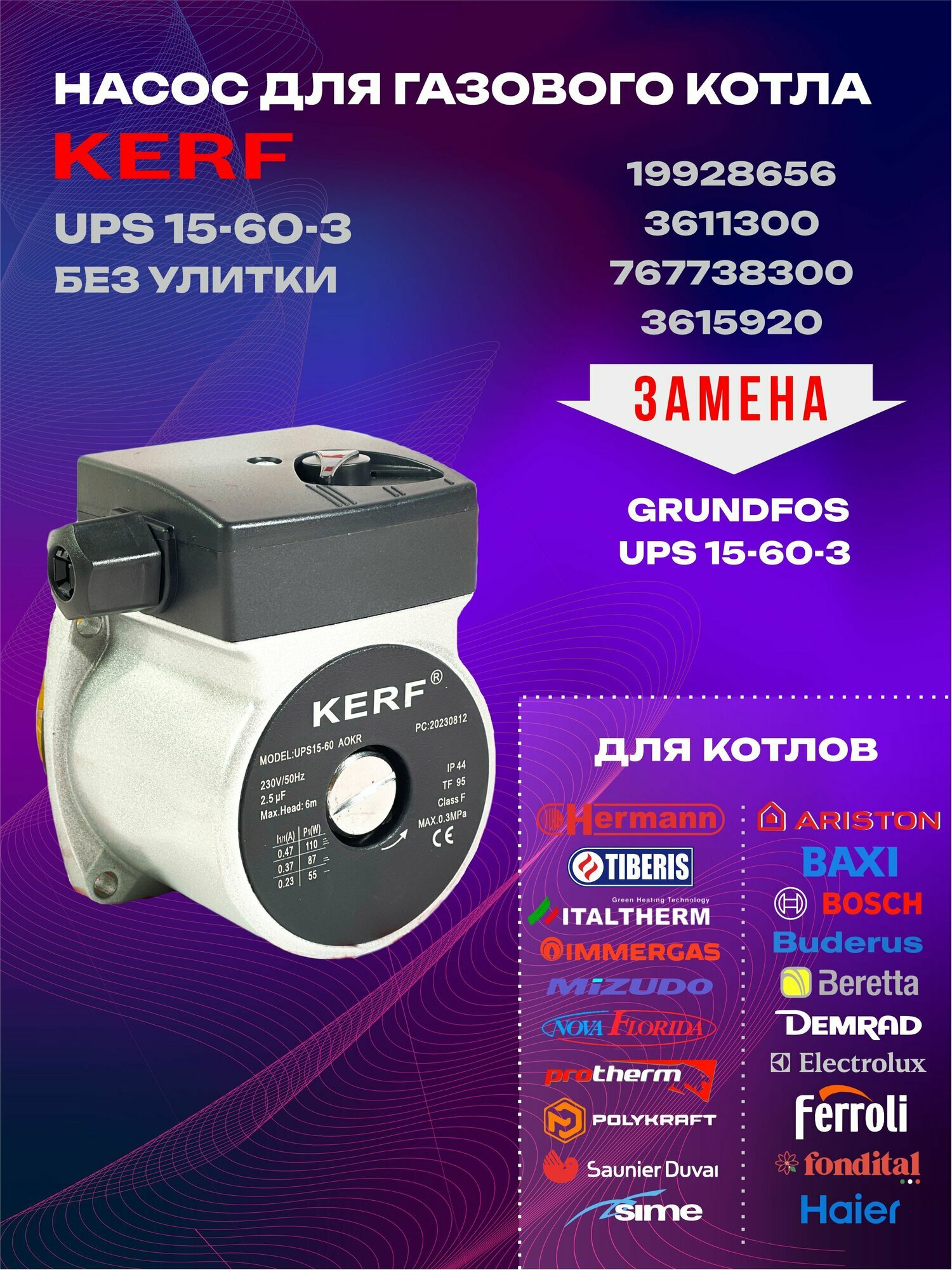 Купить Насос для котла UPS 15-60 Kerf циркуляционный 5661200,5659550,722275800,19928656,3611300,767738300,3615920,0020025205 с доставкой по всей России.