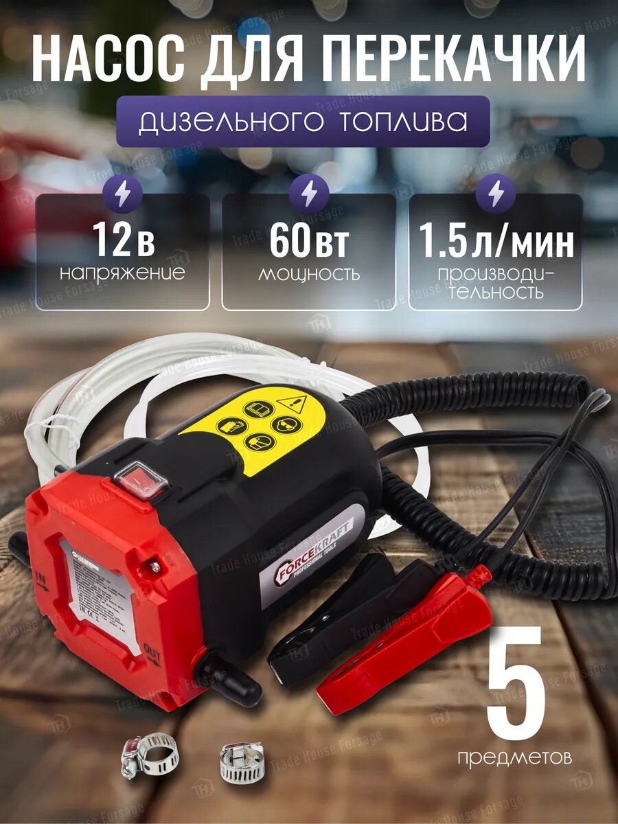 Насос для перекачки дизельного топлива от бренда FORCEKRAFT - это электрический насос, который используется для перекачивания жидкого топлива из одной емкости в другую. Он работает от источника питания 12В и имеет мощность 60Вт.