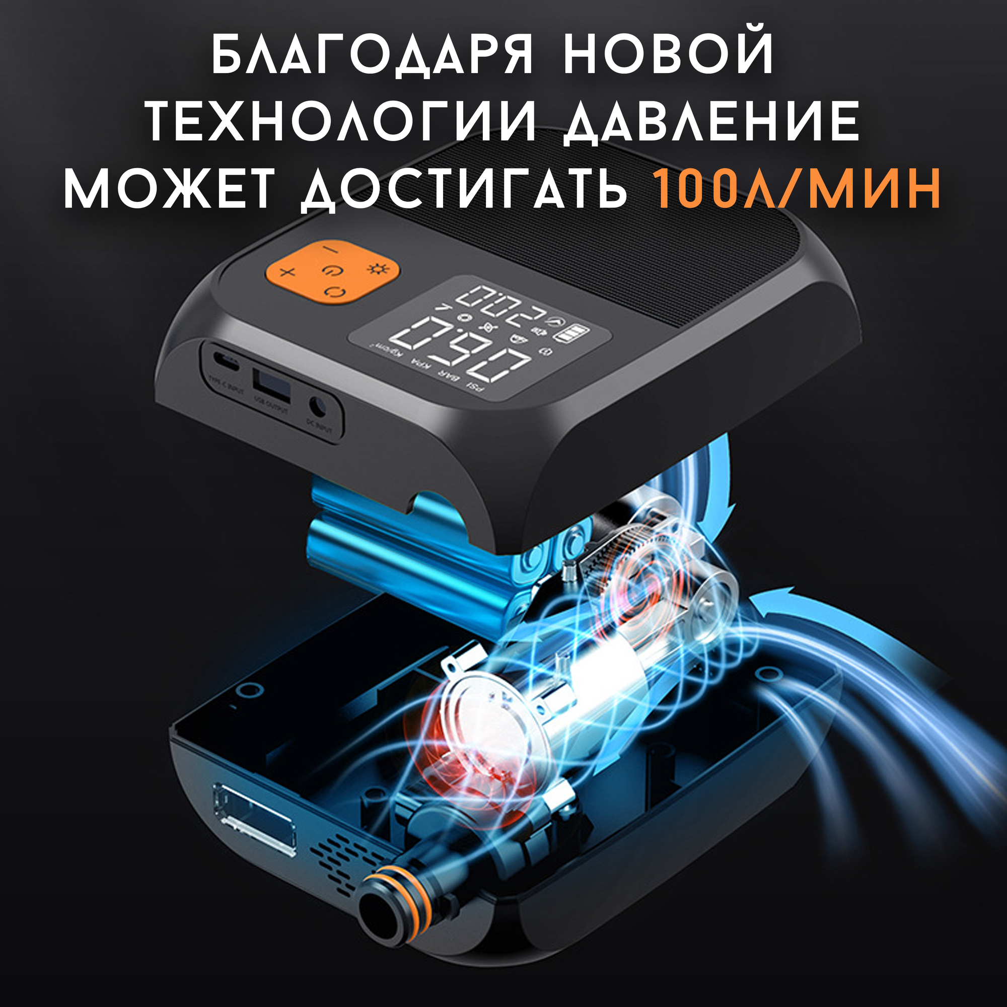 - Электронный дисплей. На дисплее отображается индикатор заряда аккумулятора, выбор единиц измерения PSI/KPA/BAR/Kg/cm3, выбор сохраненных режимов