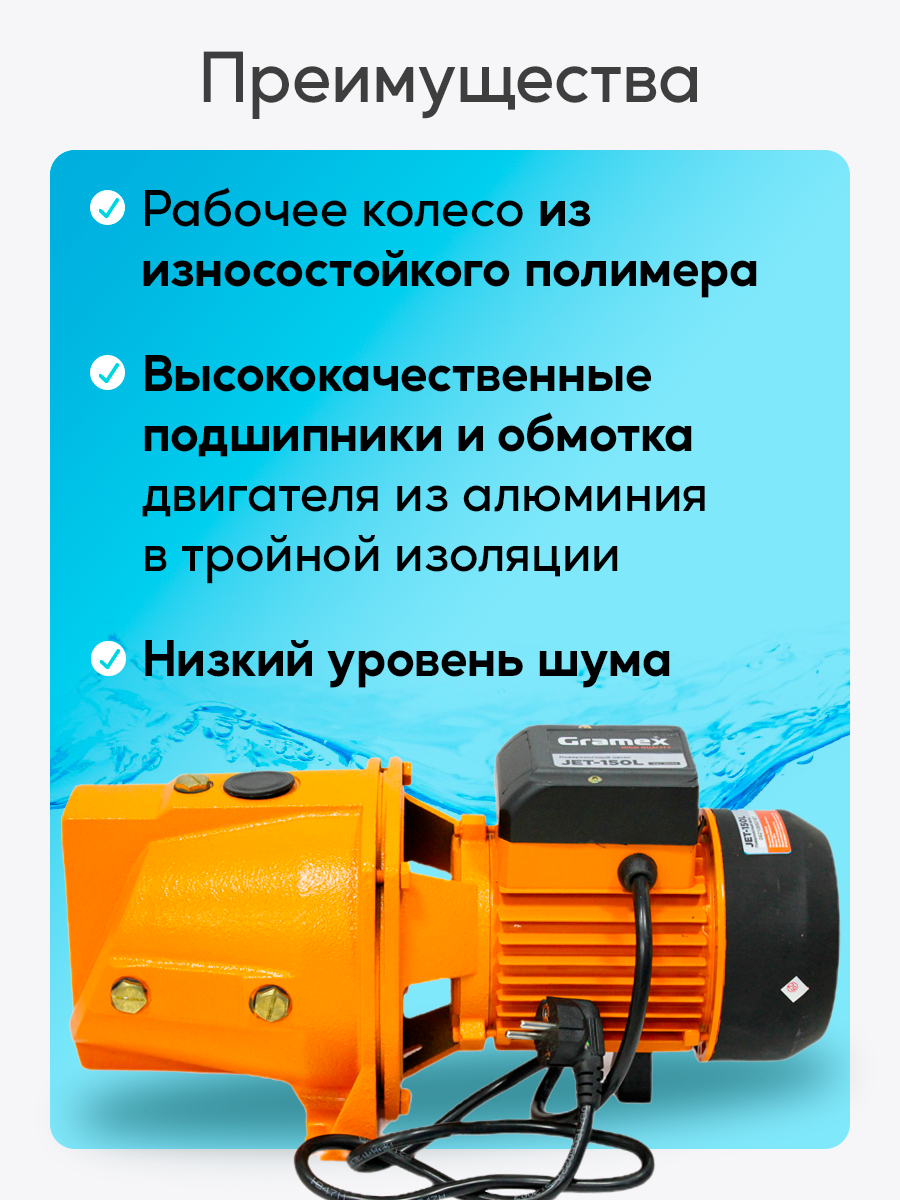 Насос GRAMEX JET 150 L - это надежный и эффективный выбор для обеспечения водоснабжения на даче или в частном доме.
