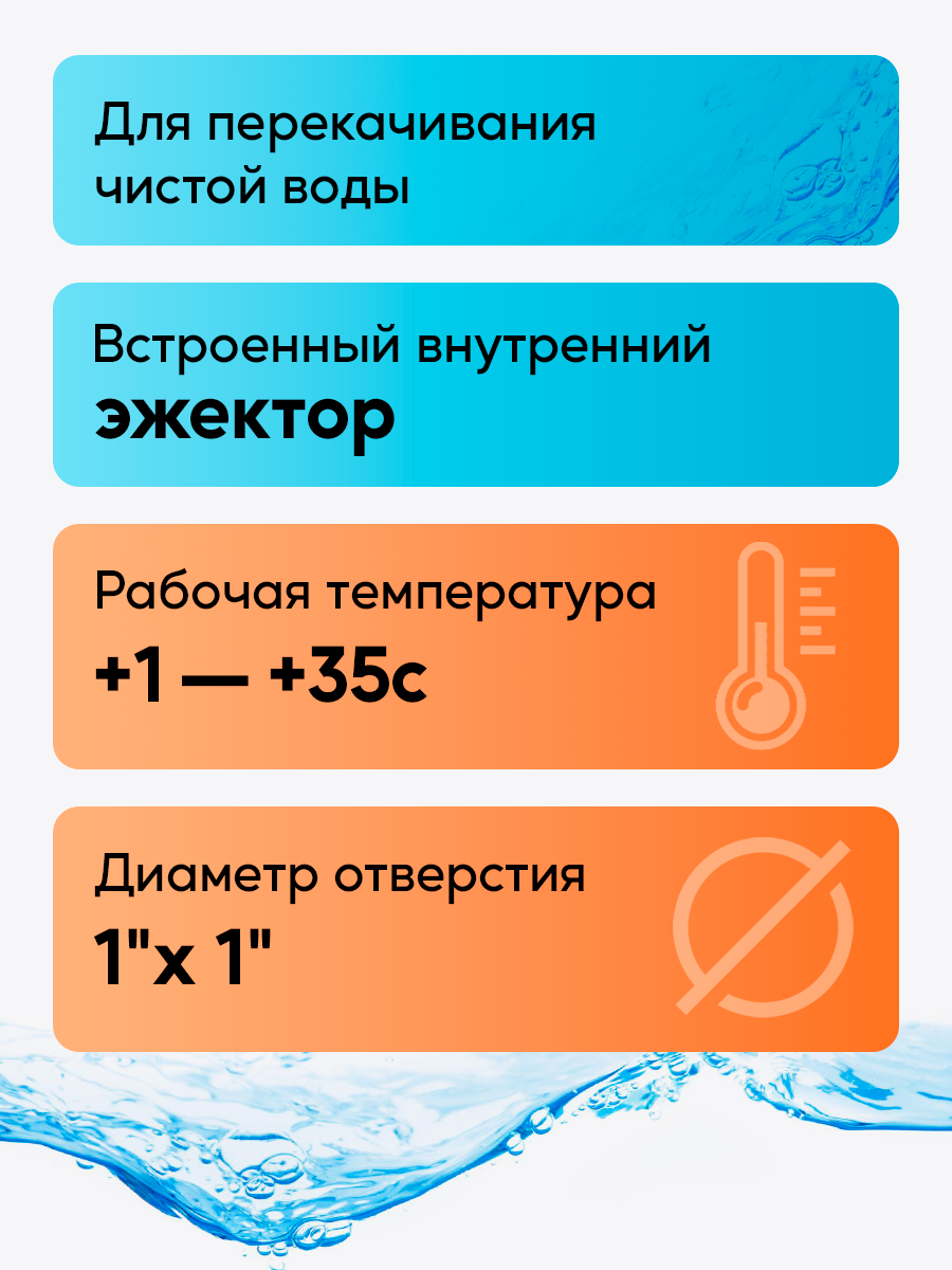 Насос GRAMEX JET 150 L оснащен встроенным обратным клапаном, что предотвращает обратный поток воды при выключении насоса.