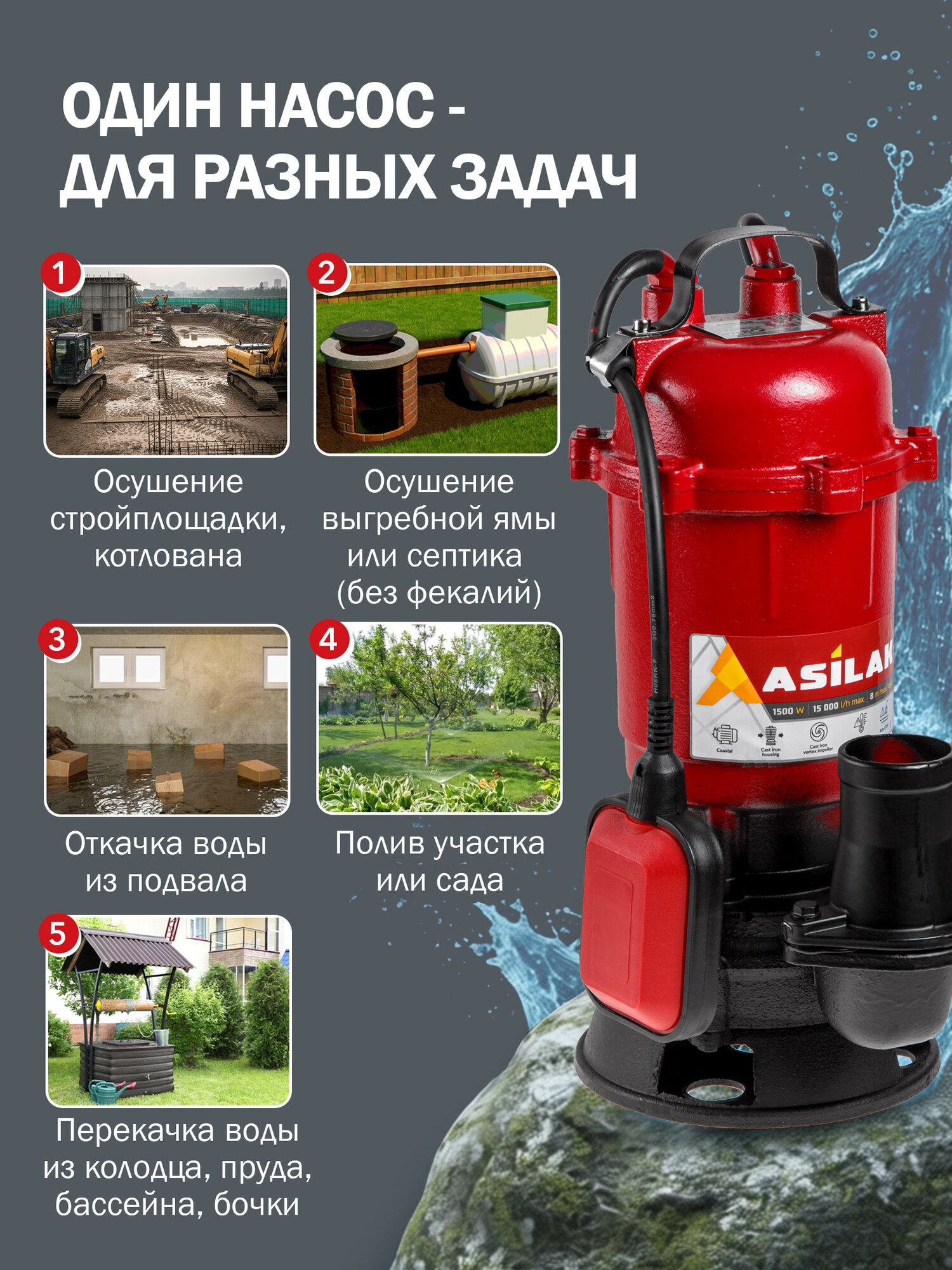 Купить Насос дренажный ASILAK SLP-1500 погружной для грязной воды (AS4410-1) с доставкой по всей России. Насос дренажный ASILAK SLP-1500 погружной для грязной воды (AS4410-1): сравнение цен, характеристики, фото, актуальное наличие и цены.
