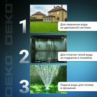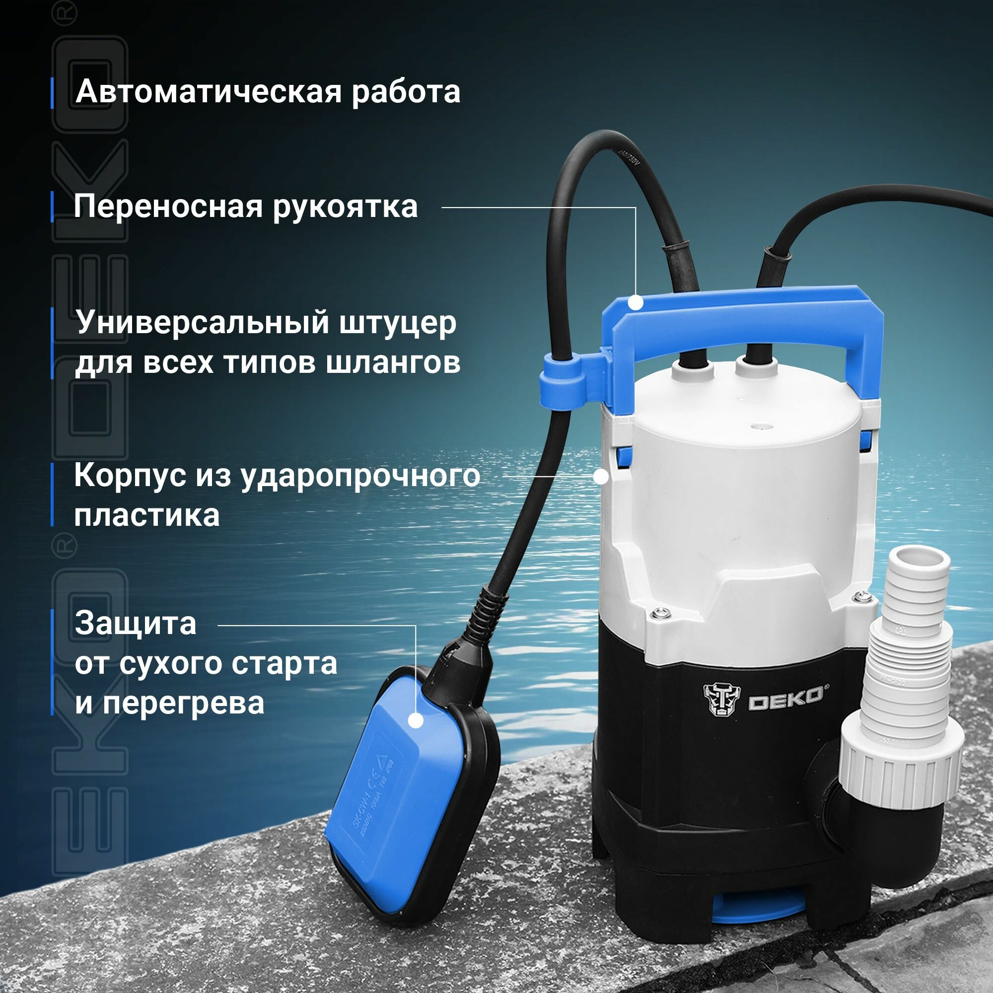 Дренажный насос DEKO DWP-400P предназначен для откачки воды из рек и водоемов (при этом допускается средний уровень загрязненности воды). Также дренажный насосы может использоваться для орошения, подачи воды с глубины.