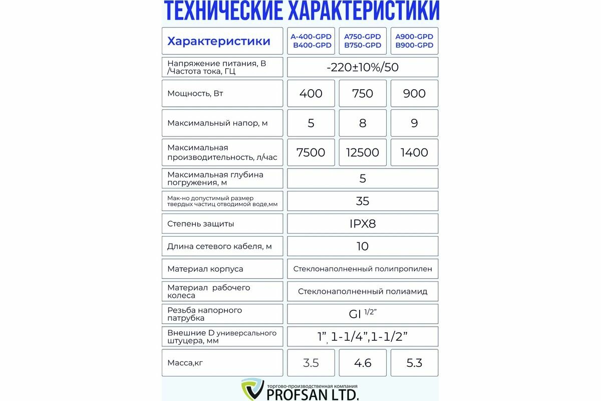 Насос дренажный ProfSan VORTPROF B400-GPD, погружной, автоматический, 400 Вт: сравнение цен, характеристики, фото, актуальное наличие и цены.