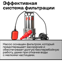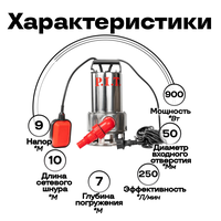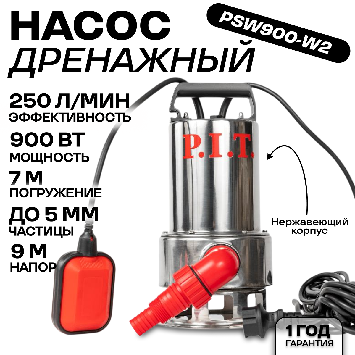 Насос дренажный PSW900-W2. Предназначен для перекачивания воды в подтопляемых помещениях. Подходит для грязной воды. Максимальный диаметр фильтруемых частиц - 5 мм. Корпус изготовлен из нержавеющей стали, что защищает насос от ударов и продлевает срок службы. Насос автоматически включается и выключается при критическом уровне воды, благодаря поплавковому механизму.