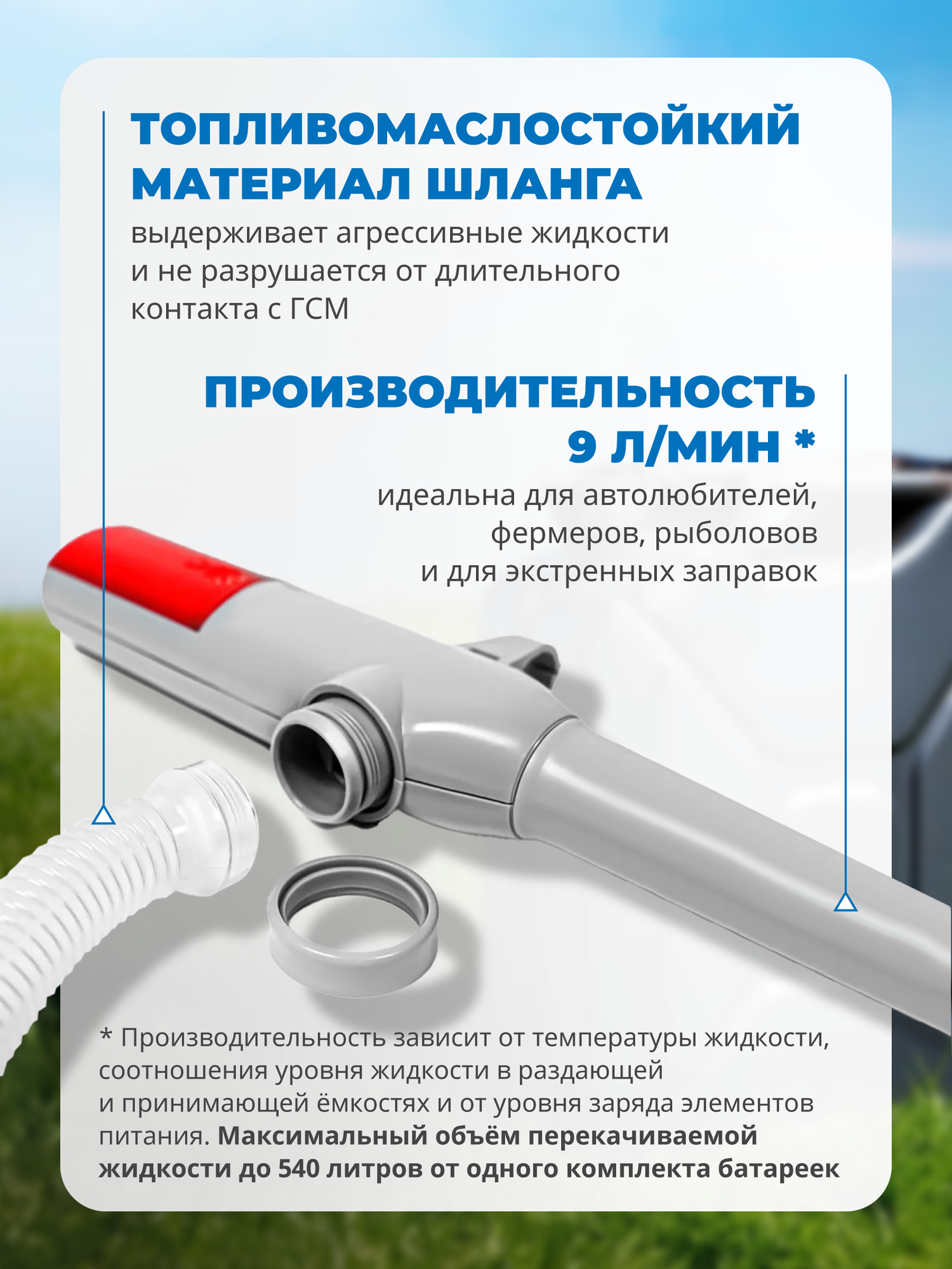 Купить Насос Dukshin для перекачки топлива, электрический, 9 л/мин, 2 батарейки AA с доставкой по всей России. Насос Dukshin для перекачки топлива, электрический, 9 л/мин, 2 батарейки AA: сравнение цен, характеристики, фото, актуальное наличие и цены.