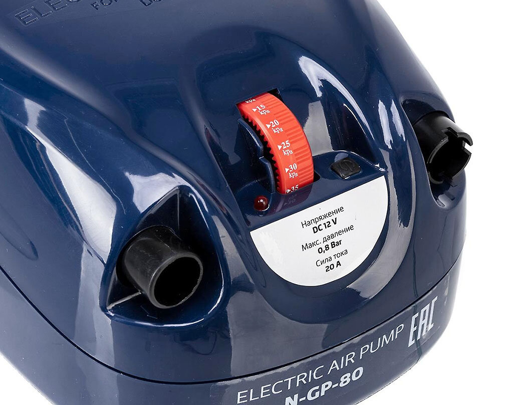 Электрический насос NISUS N-GP-80Двухступенчатый электрический насос высокого давления N-GP-80 работает только от внешнего аккумулятора 12 В. Регулятор давления – механический в диапазоне 0,1÷0,8 Bar с шагом 0, 05 Bar. Подходит для накачивания/сдувания надувных лодок ПВХ, РИБов, бассейнов, матрасов, аттракционов (в комплекте поставки – адаптер под вворачиваемый клапан и 9 переходников под воздушные клапаны различных диаметров). При накачивании сначала крыльчатка нагнетает объем, а затем поршневой компрессор создает рабочее давление. С первой ступени на вторую насос переключается автоматически. Как только давление достигает заданного уровня, срабатывает механический предохранитель – нагнетание воздуха прекращается. Корпус из высокопрочного пластика защищает механизмы насоса от повреждений при ударах, а сумка из водонепроницаемой ткани – от загрязнения, попадания влаги, образования потертостей, царапин и сколов на корпусе при транспортировке, хранении. Время накачивания лодки средних размеров (3,3 ÷ 3,6 м) составляет 5 ÷ 7 минут, сдувания - 4 ÷ 5 минут. Упаковка (Д/Ш/В): 23х23х28 см. Вес: 3 кг; Напряжение: 12 В; Сила тока: 20 А; Производительность: 500 л/мин; Время беспрерывной работы: 15 мин; Давление воздуха: 10 кПа - 80 кПа (0,1 - 0,8 бар); Регулятор давления: механический ролик; Величина шага настройки регулятора давления: 5 кПа; Диаметр воздушного шланга: 20,5 мм; Шланги: 2 шт; Длина провода: 3 м;