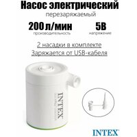 Купить Intex 66637 Насос электрический USB 5В, 2А «USB200R» перезаряжаемый, пауэрбанк, 2 насадки в комплекте с доставкой по всей России.