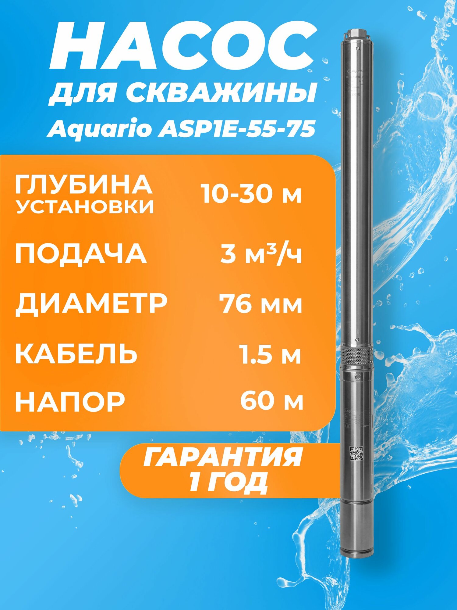 Насос глубинный скважинный Aquario ASP1E-55-75 каб. 1,5м. 3 м3/ч, насос для скважины 10-30м: сравнение цен, характеристики, фото, актуальное наличие и цены.