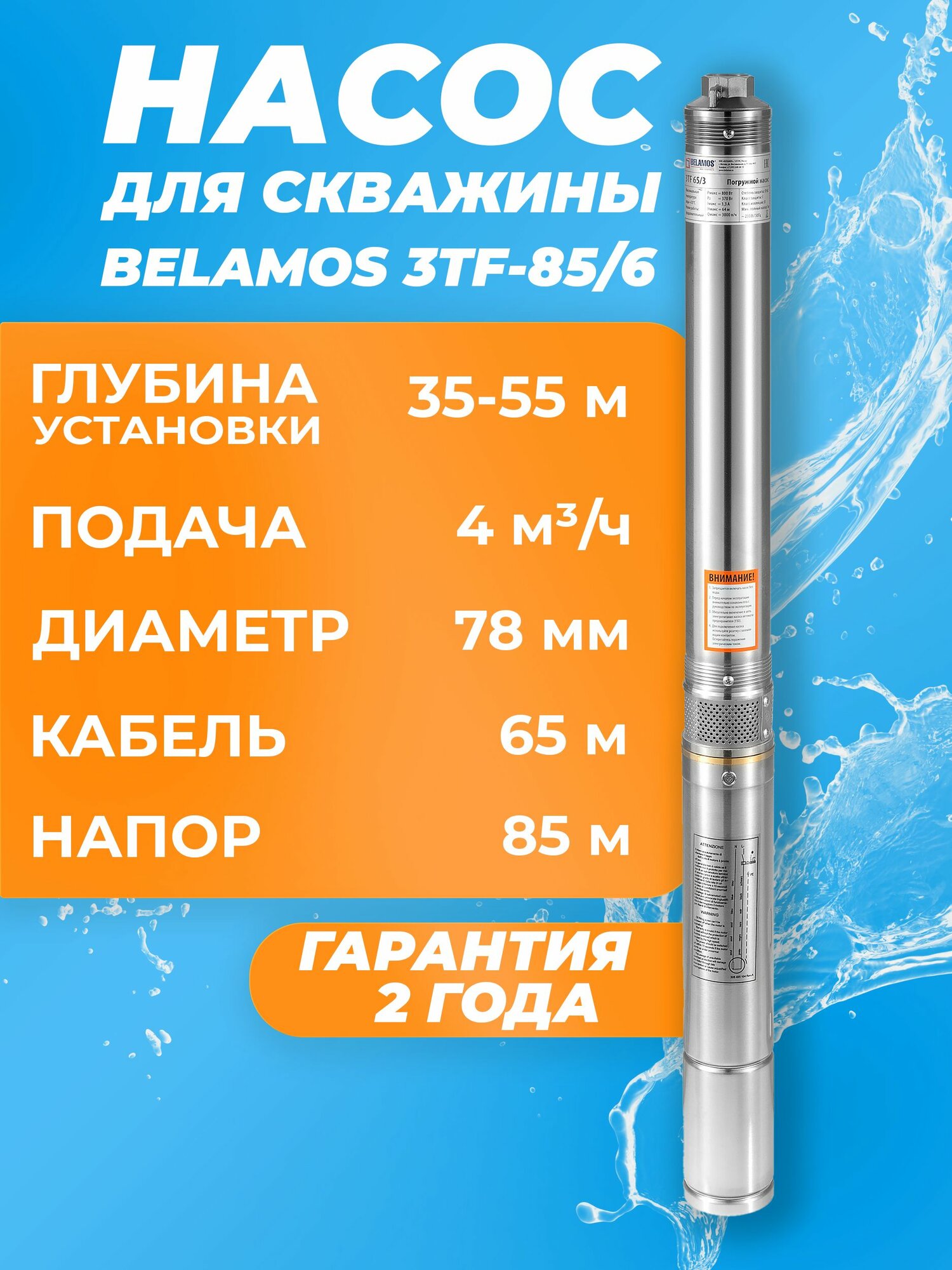 Насос глубинный скважинный Belamos 3TF-85/4 каб. 65м. 4 м3/ч, насос для скважины 35-55м Беламос: сравнение цен, характеристики, фото, актуальное наличие и цены.