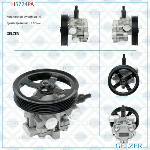 Насос ГУ Шкив 6PK, диаметр шкива 132мм . Плоский разъем под датчик . Штуцер (выход) М16х1.5, расположен в сторону вращения. Gelzer