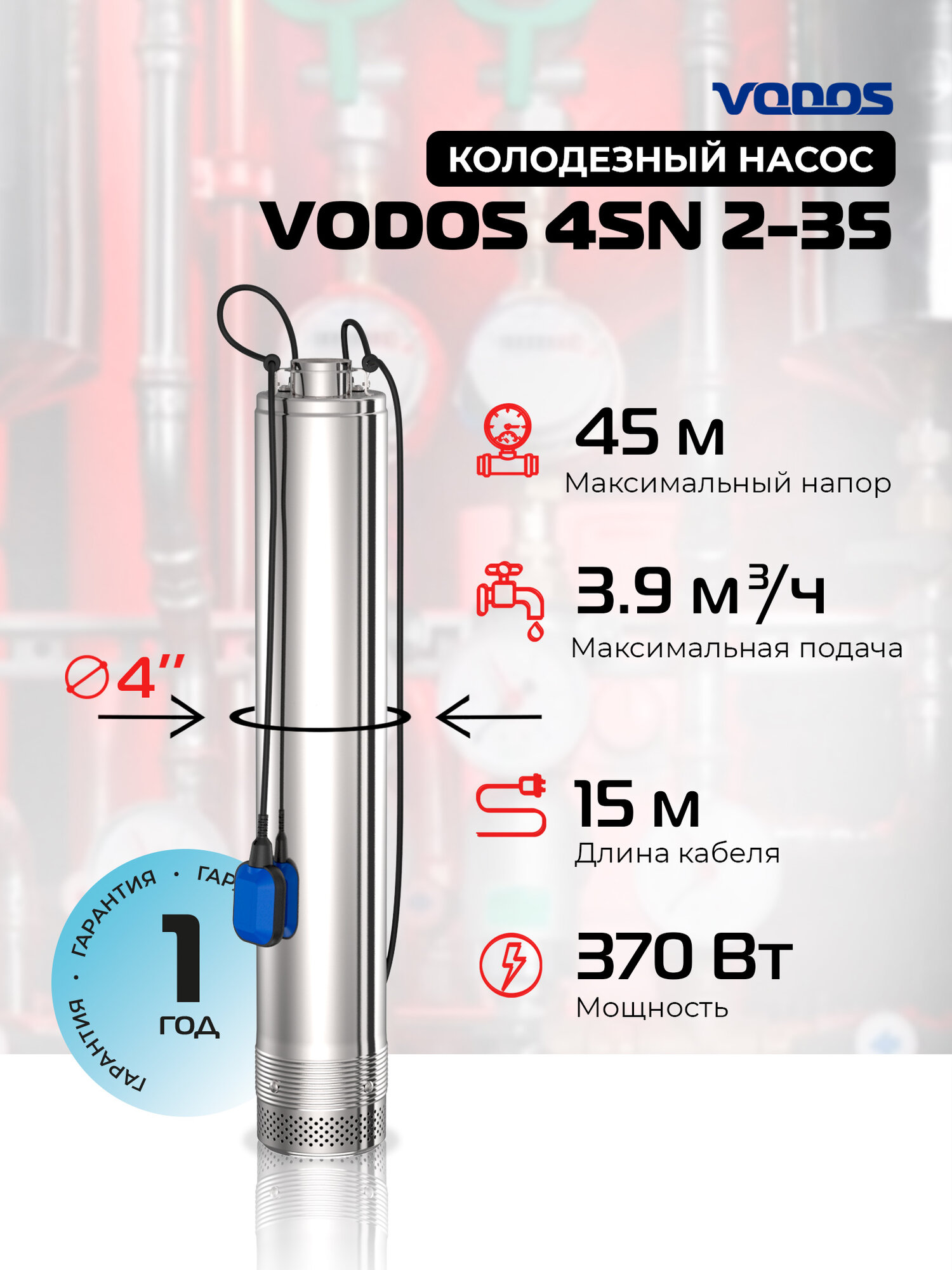 Купить Насос колодезный VODOS 4SN 2-35А с кабелем 15м, нержавеющая сталь с доставкой по всей России. Насос колодезный VODOS 4SN 2-35А с кабелем 15м, нержавеющая сталь: сравнение цен, характеристики, фото, актуальное наличие и цены.