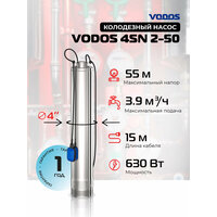 Купить Насос колодезный VODOS 4SN 2-50А с кабелем 15м, нержавеющая сталь с доставкой по всей России. Насос колодезный VODOS 4SN 2-50А с кабелем 15м, нержавеющая сталь: сравнение цен, характеристики, фото, актуальное наличие и цены.