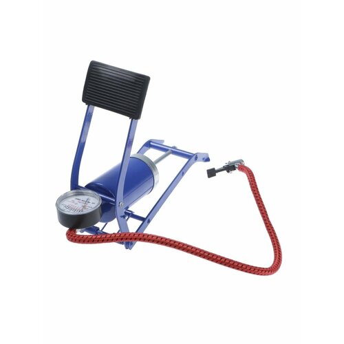 Насос оснащён манометром для измерения давления воздуха. Для удобства пользователя педаль насоса имеет специальную рельефную противоскользящую накладку. В комплект входят специальные насадки-адаптеры.