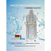 Насос погружной для воды Ручеек 1М нижний забор воды, для колодца или пруда / алюминиевая обмотка, кабель 10 м