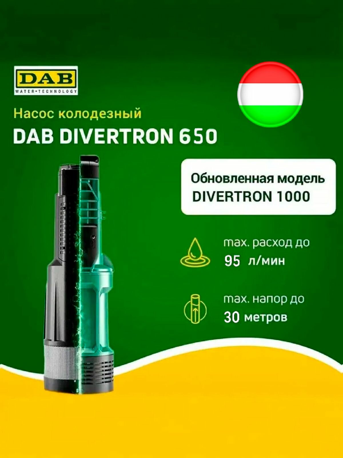 Насос погружной колодезный DAB Divertron 650 (420 Вт, 95 л/мин, напор 30 м) обновленная модель DIVERTRON 1000: сравнение цен, характеристики, фото, актуальное наличие и цены.