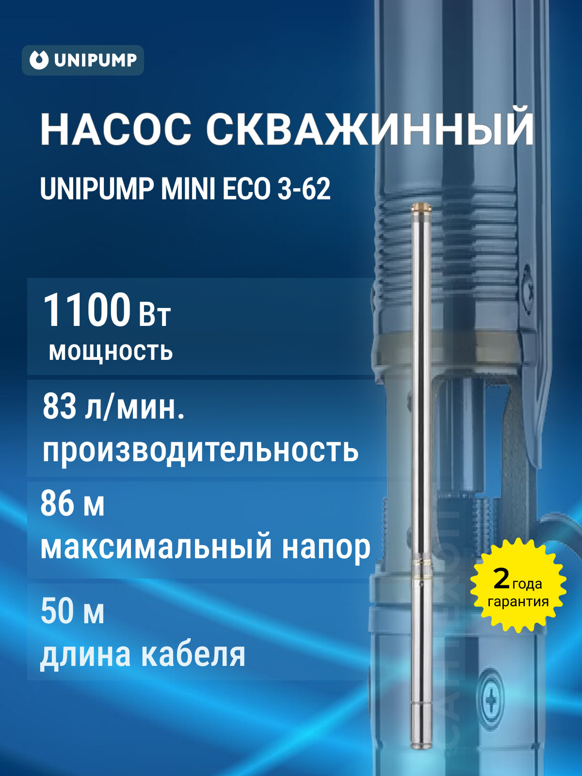 Купить Насос погружной скважинный ECO 3-62 UNIPUMP MINI (1,1 кВт, 50 м) с доставкой по всей России. Насос погружной скважинный ECO 3-62 UNIPUMP MINI (1,1 кВт, 50 м): сравнение цен, характеристики, фото, актуальное наличие и цены.