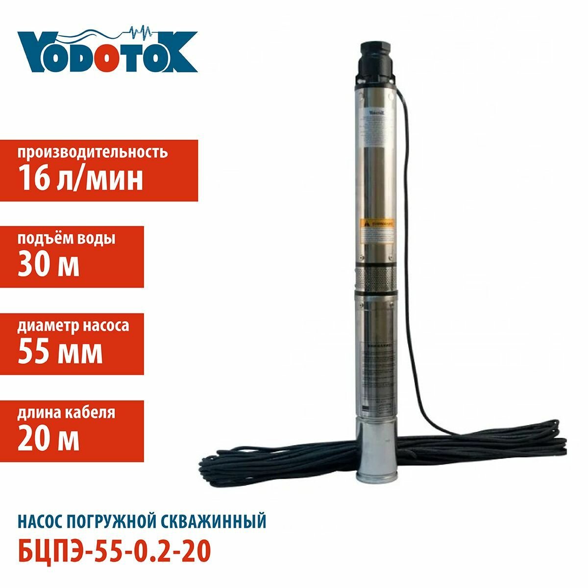Купить Насос погружной скважинный «Vodotok» БЦПЭ-55-0.2-20м, 450Вт, для чистой воды с доставкой по всей России.
